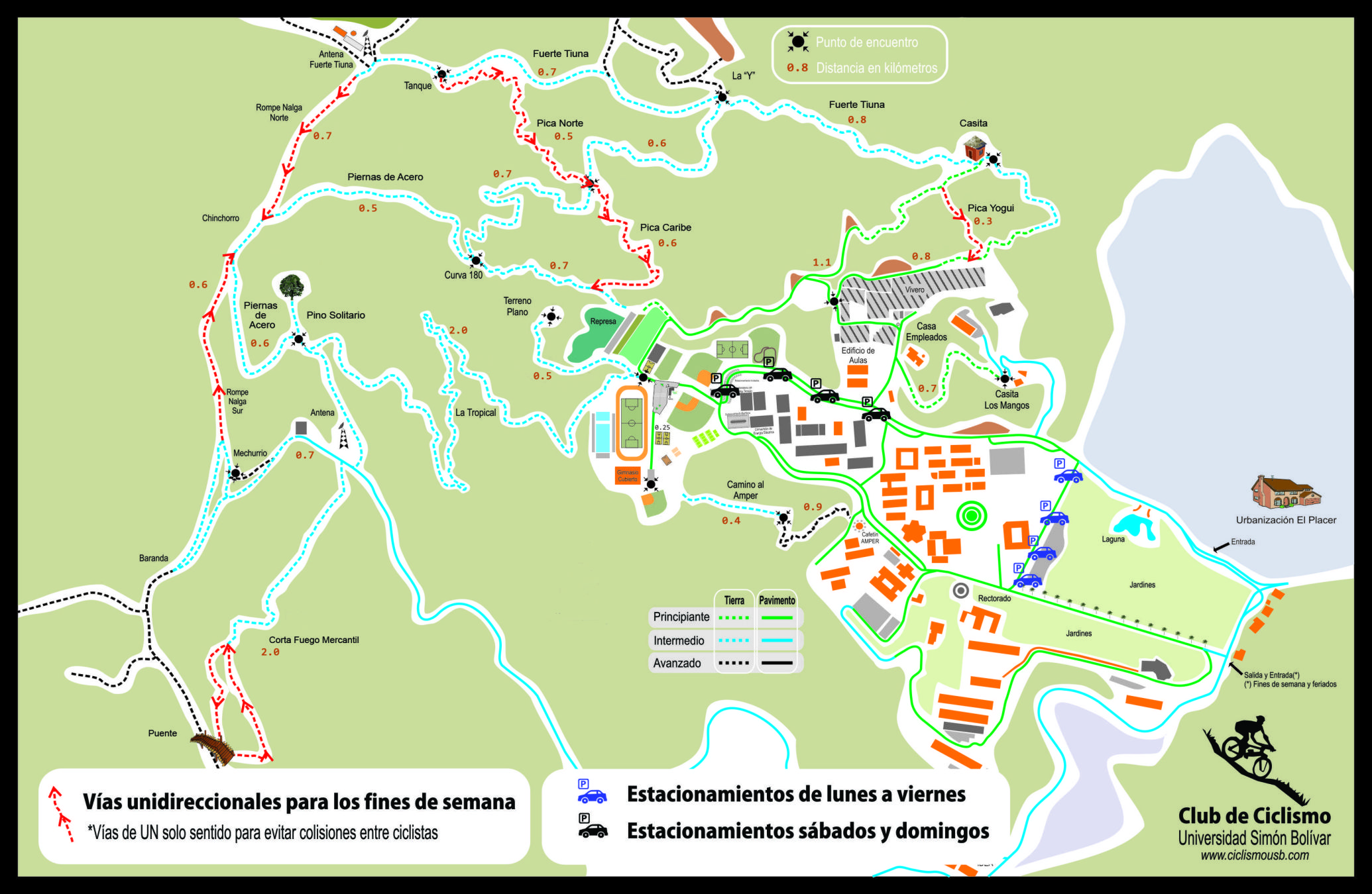 Asimismo, desde el Club de Ciclismo USB se han gestado iniciativas para el mantenimiento y mejora de los senderos, apoyados en la ayuda tanto de sus miembros como de los ciclistas invitados. Constantemente los miembros del Club y parte de los ciclistas invitados, también denominados miembros externos, hemos apoyado en la limpieza de los senderos, la tala de árboles caídos y especialmente, en la señalización de los senderos.